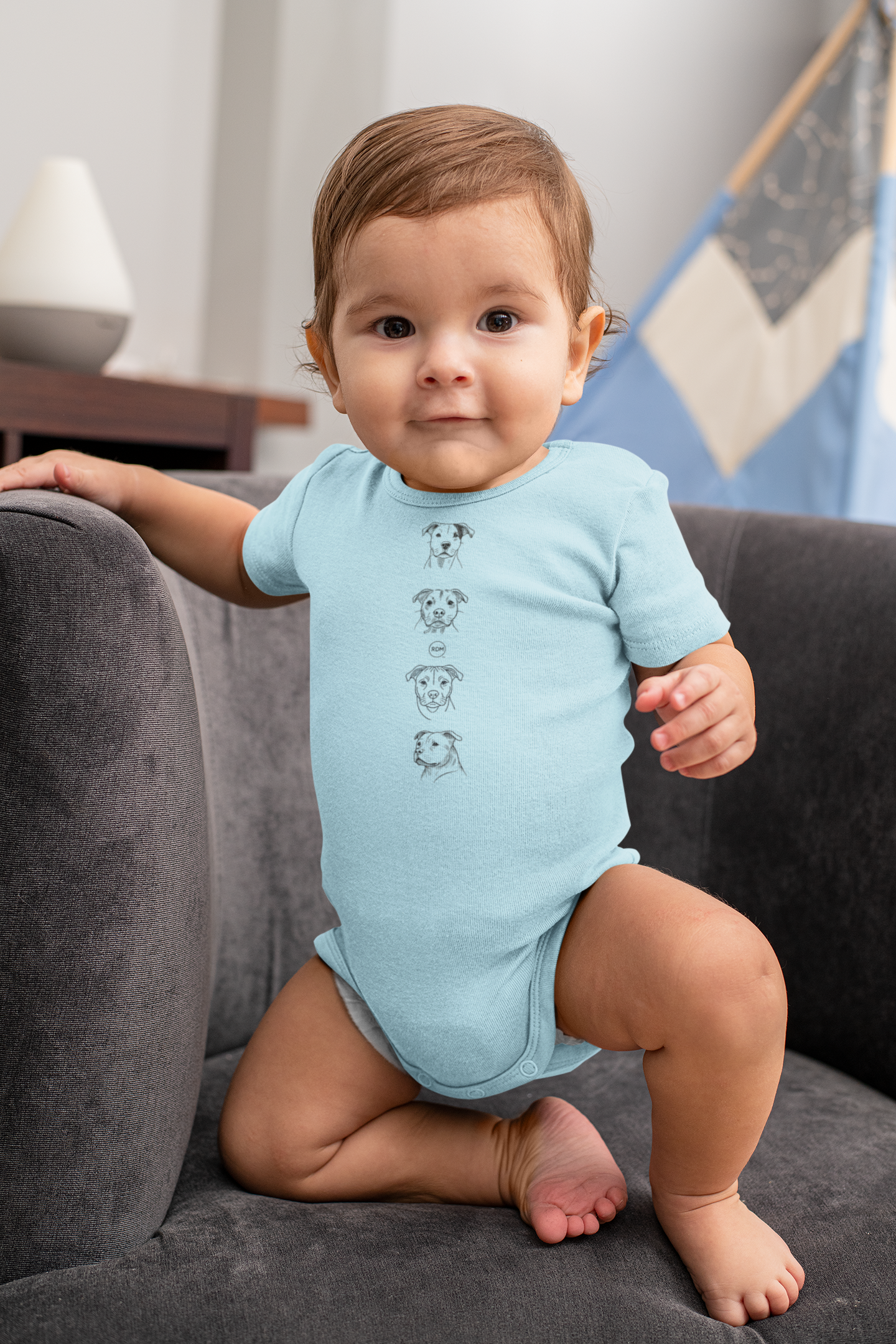 Our adorable Infant Pitbull Onesie is perfect for young dog lovers. Featuring a fun and vibrant pitbull graphic, this onesie is crafted from soft, durable fabric to keep your little one comfortable all day. Ideal for casual wear, school, or playdates, it's a must-have addition for any pitbull enthusiast. Baby clothing needs to be both durable and soft. With the infant fine jersey bodysuit, youths get just that. The fabric is 100% cotton for solid colors. For heather colors, polyester is included. There are seams along the sides of this product. All bindings are made with ribbed knitting for improved durability. There are plastic snaps at the cross closure for easy changing access.